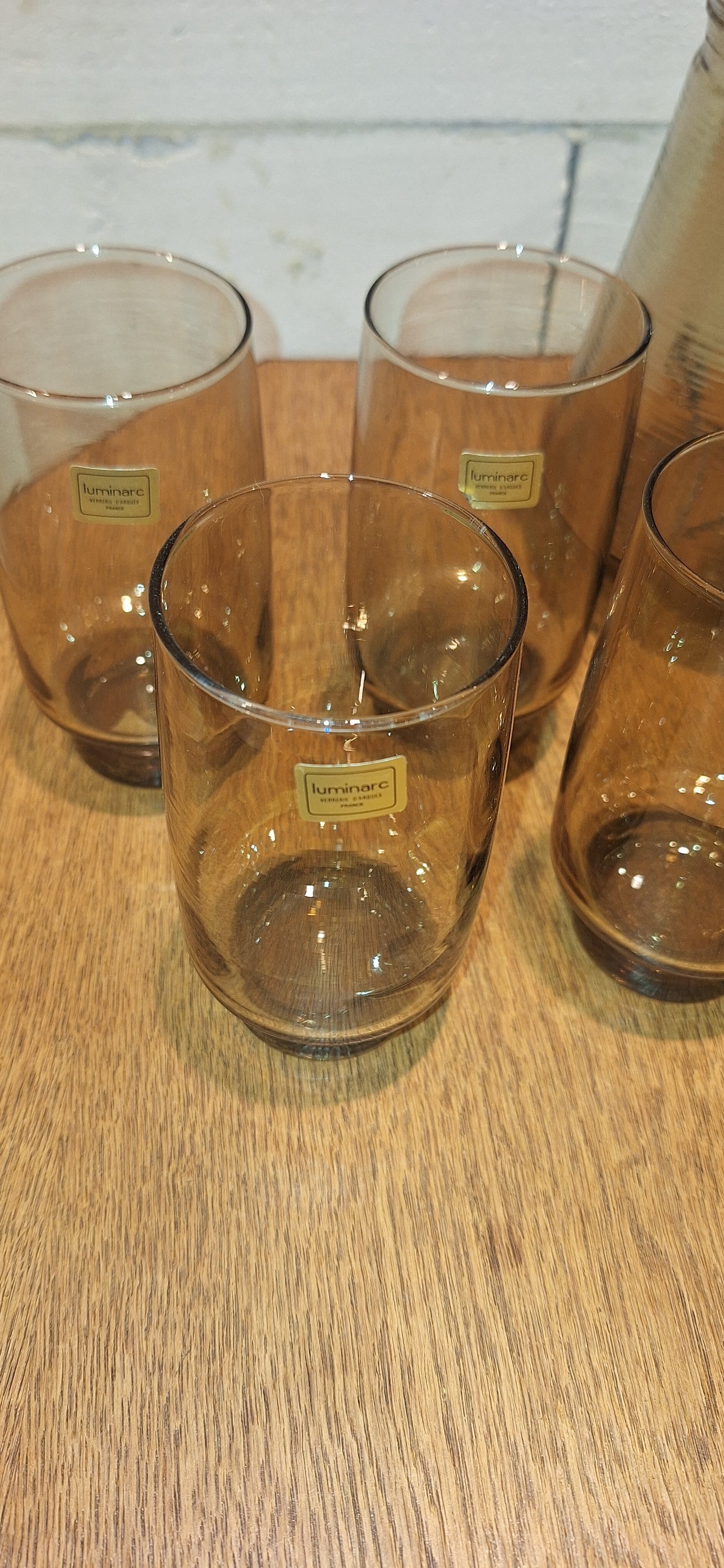 Je mixdranken, water of limonade in de populaire vintage rookglas Luminarc longdrink glazen uit France. Helemaal intact, zelfs nog voorzien van het origineel merkstickertje.