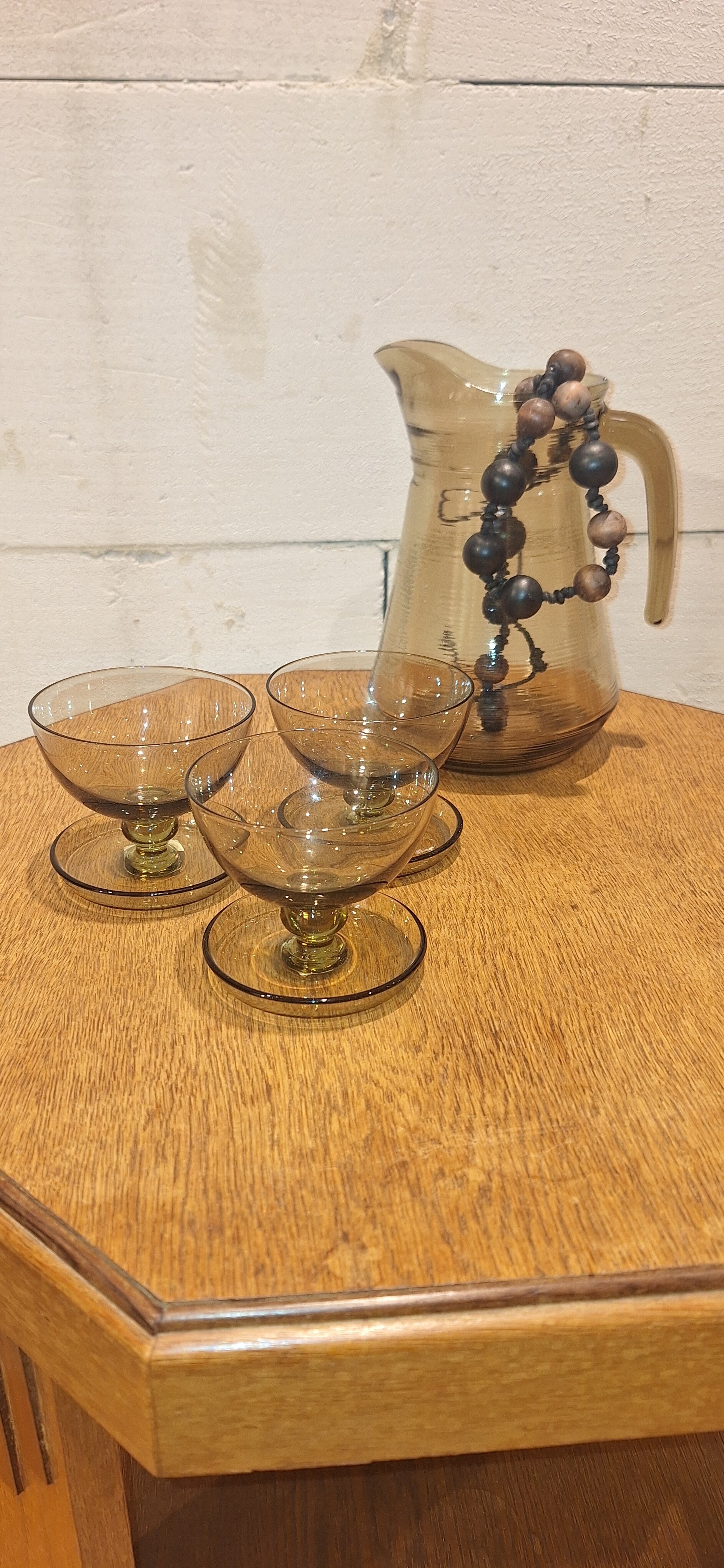 Prachtige Franse ijscoupes. Doe er gerust een mooi voorgerecht in of een coctail i.p.v. ijs. Het is rookglas met een mooie groene gloed.